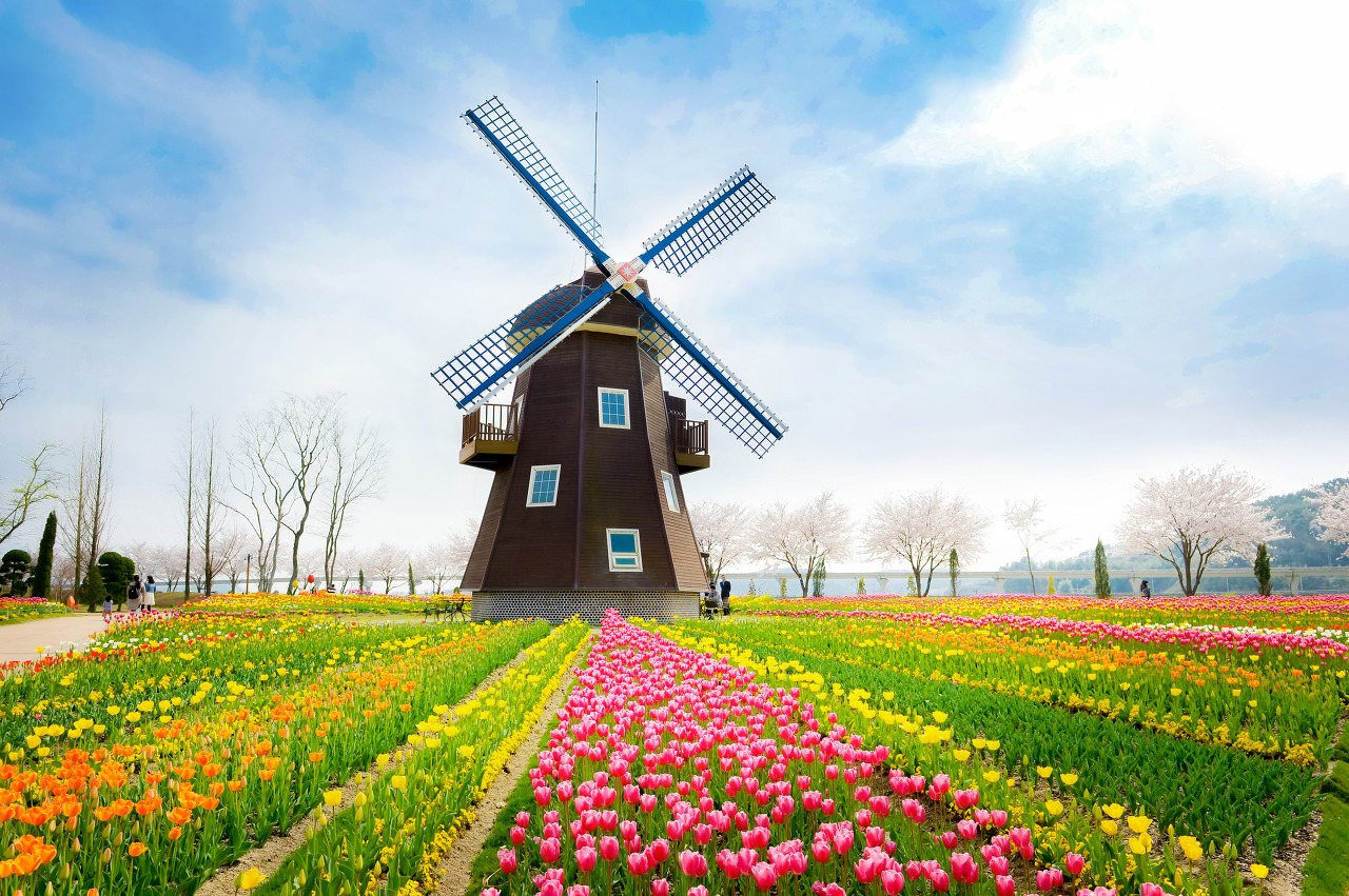 순천만 정원은 전라도 순천에 위치한 아름다운 정원이다. 세계별 아름다운 정원이 모여있는 곳으로 가장 인기 있는 봄 꽃 여행지 중 하나다. 이곳 정원은 110만 평방미터가 넘고 튤립, 벚꽃, 카놀라 꽃을 포함한 매우 다양한 꽃들이 특징이다. 언제 찾아도 좋은 곳이지만, 가장 좋은 시기는 유채꽃이 만개한 3월 중순부터 4월 중순이 아닐까 싶다. 이 정원은 또한 4월의 튤립 축제와 11월의 국화 축제를 포함하여, 일 년 내내 다양한 행사를 개최한다. 꽃 외에도 습지 전망대, 에코브리지, 순천만 갈대습지 등 다양한 볼거리도 즐길 수 있다.
